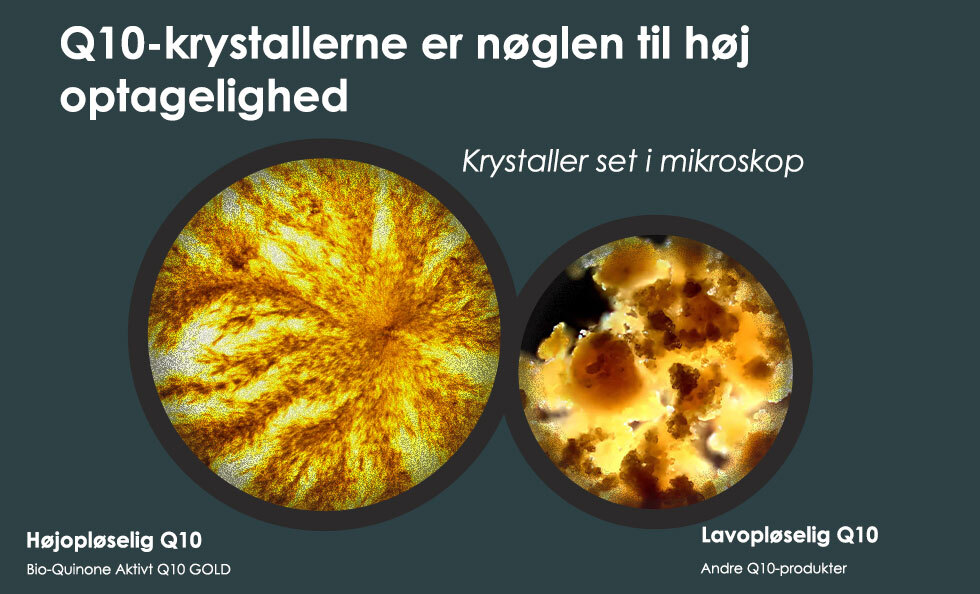 Q10-råvaren er et fedtopløseligt, krystallinsk stof, som kroppen har svært ved at optage, men ved hjælp af en særlig fremstillingsteknik udviklet og patenteret af Pharma Nord gennemgår Q10-råvaren en speciel varmebehandling, der medfører, at Q10-krystallerne opløses fuldstændig ved legemstemperatur. Det er denne komplette opløsning af Q10 og råvarens høje kvalitet samt fremstilling efter GMP-protokollen, der er årsag til, at man med Bio-Quinone Aktivt Q10 GOLD har opnået en så god optagelighed af aktivstoffet.