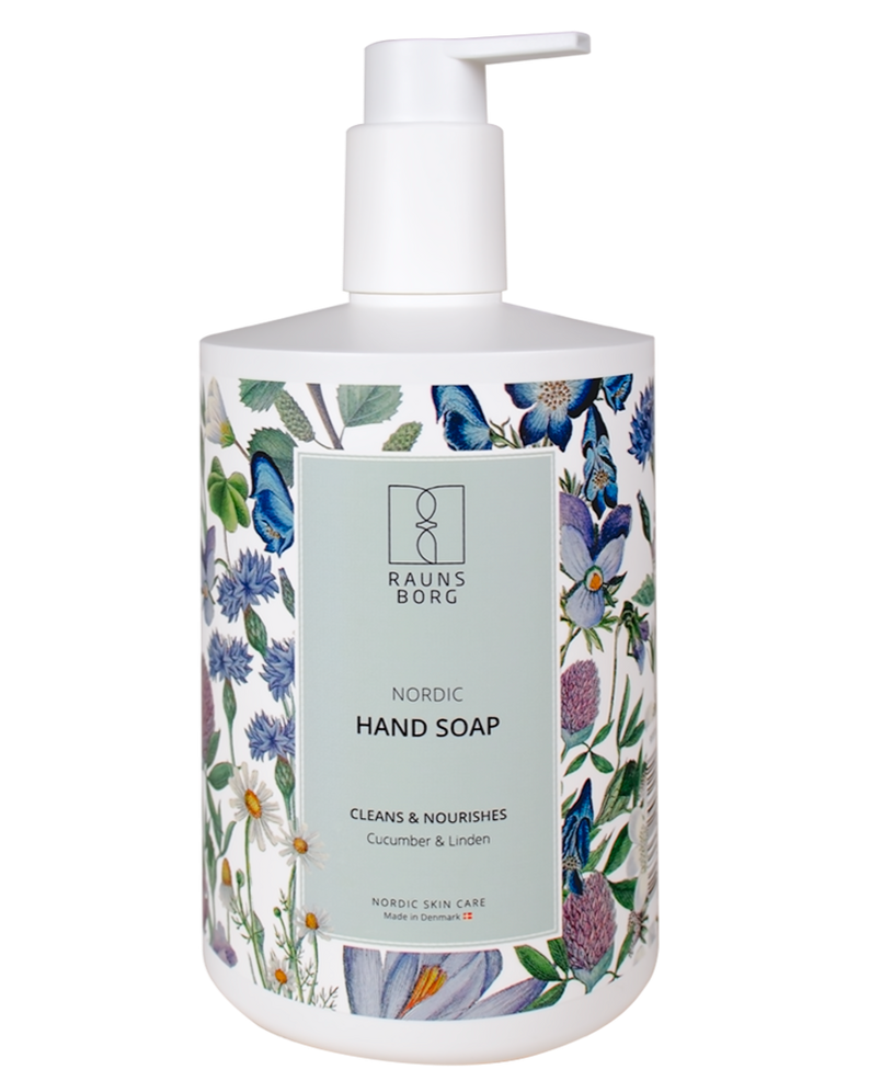 Raunsborg Hand Soap er en mild håndsæbe, der både renser og plejer huden. Den har et rigt indhold af aktive ingredienser der mindsker udtørring af huden, og indeholder blandt andet agurk, som er både fugtgivende og blødgørende.