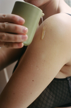 Massér den ind i, så den bliver absorberet og efterlader huden blød og næret. når olien bliver køligere, bliver den lidt hårdere, men den forbliver stadig blød nok til at arbejde med.