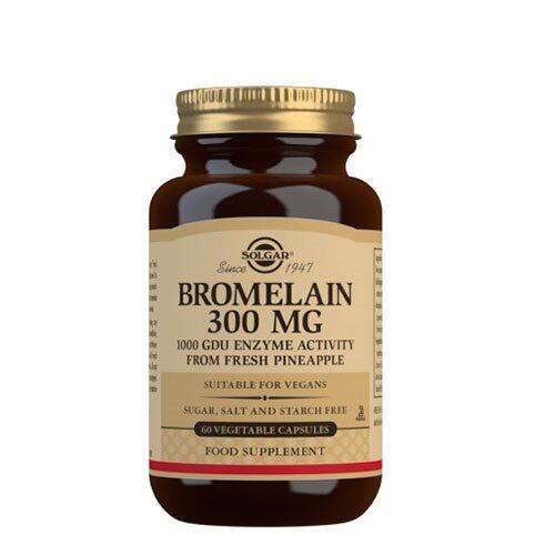 Solgar Bromelain 300 mg indeholder enzymet bromelain som er udvundet fra frisk ananas, og er specielt fremstillet til at sikre at aktiviteten er bibeholdt.