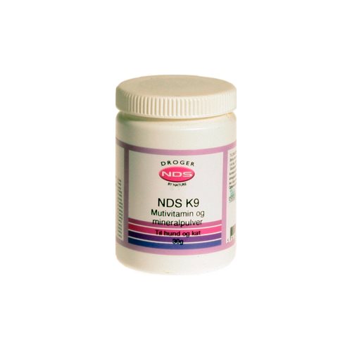 NDS K9 Multivitamin, mineral Hund og KatKosttilskudVitamintilskud Obligatorisk tekst for kosttilskud: Den anbefalede daglige dosis bør ikke overskrides. Kosttilskud bør ikke træde i stedet for varieret kost. Opbevares uden for børns rækkevidde. Bør kun efter aftale med læge eller sundhedsplejerske anvendes af gravide og børn under 1 år.Ingredienser:Calsium jod vitamin C Magnesium vitamin E fosfor Niacin kolin inositol paba jern mangan panyhotensyre Svovl BetaKaroten vitamin B6 thiamin riboflavin vitamin B12 bor Silica kobber Biotin vitamin K selen chrom Folinsyre vanadium potassium Molybden Zinch D-vitamin D3 Er der angivet en * ved en ingrediens, er den 100% økologisk