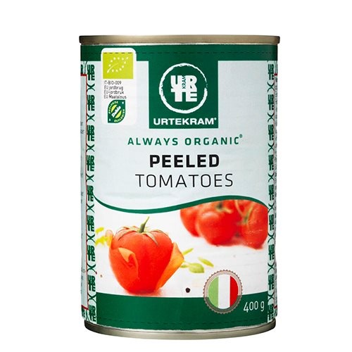 Urtekrams flåede tomater kommer fra en lille familievirksomhed i Italien. Tomaterne har en flot dyb rød farve og masser af solmoden smag. Uundværlig til lækre saucer og et utal af smagfulde retter.