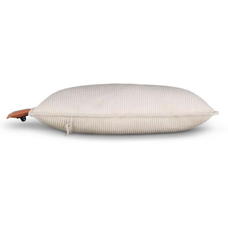 Puden fås i flere forskellige farver og stofvarianter, så du nemt kan finde en model, der passer til din personlige stil og boligindretning. Denne variant er i flot cremefarvet fløjl og passer perfekt til både sofa, seng og kontor.