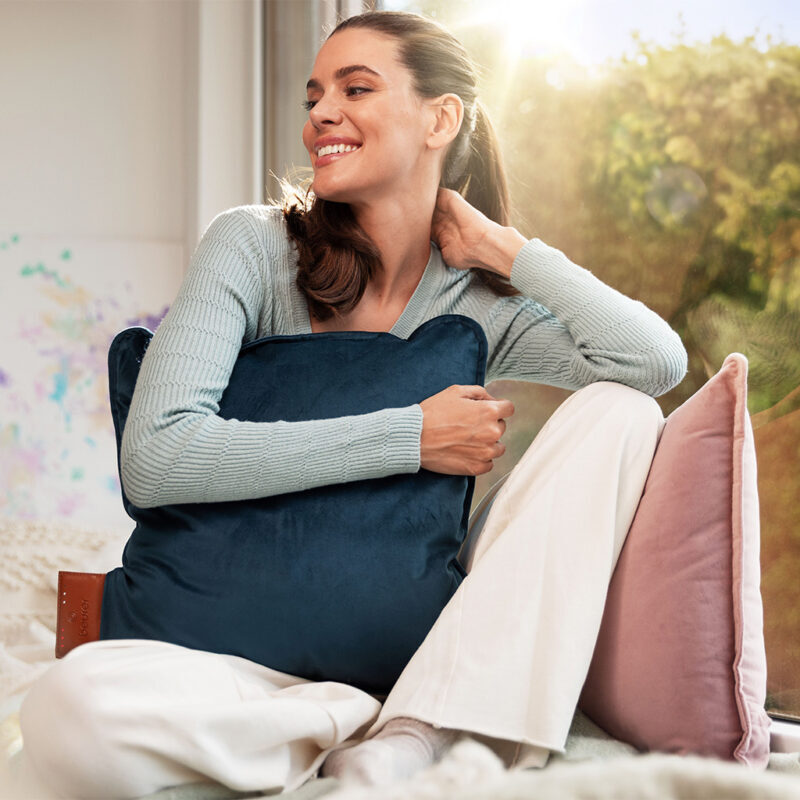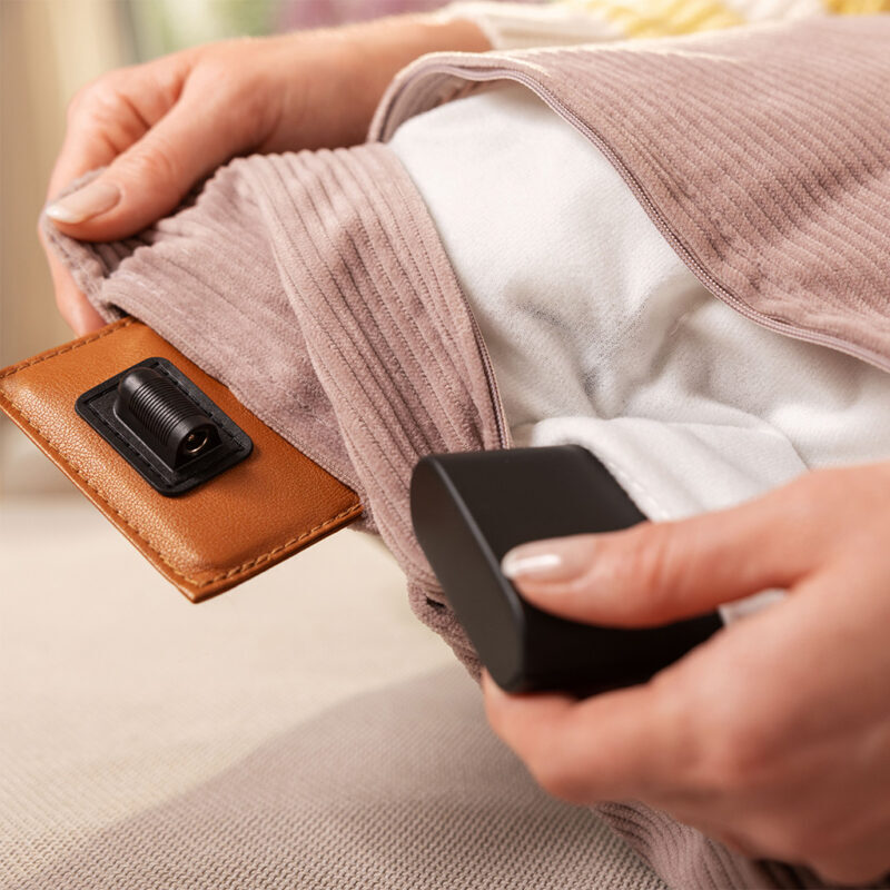Puden har tre varmeindstillinger, der let justeres efter behov via knapper på puden, og den indbyggede sikkerhedsfunktion sørger for automatisk slukning efter 90 minutter, så du trygt kan bruge den, også hvis du falder i søvn.