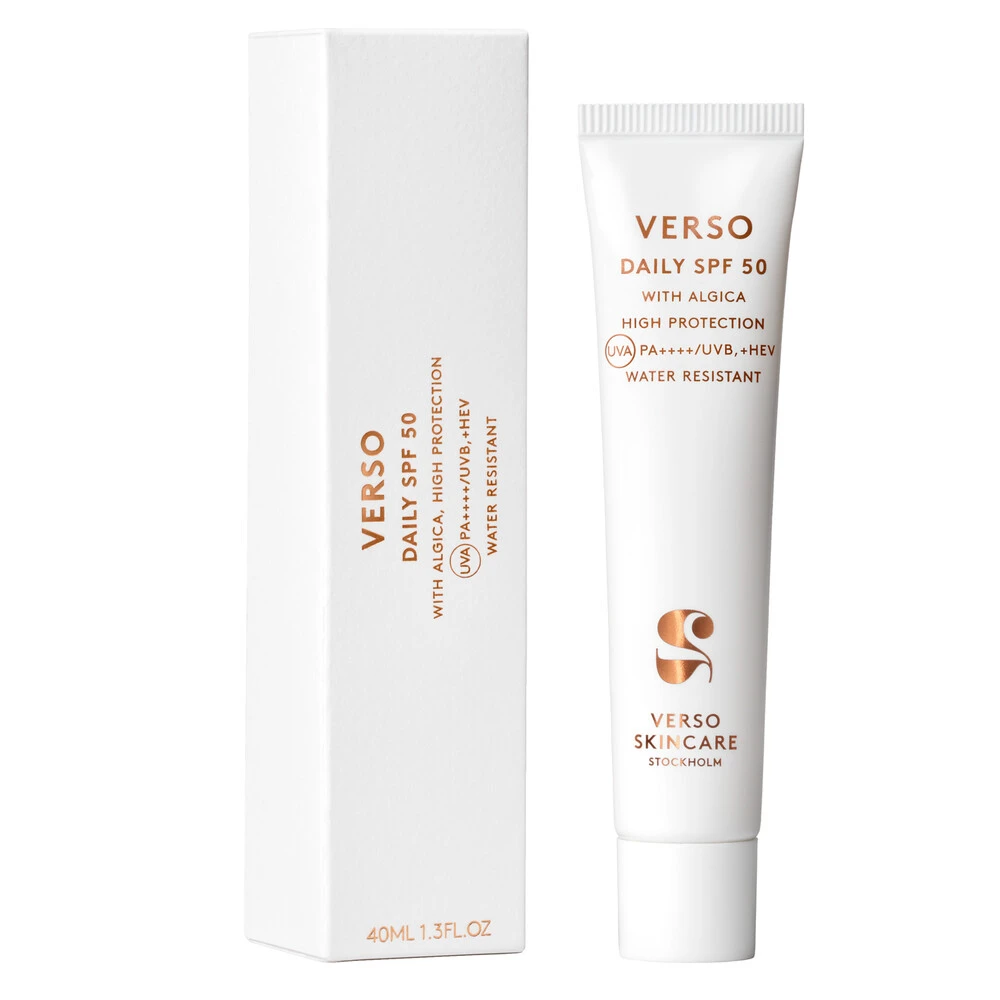 Verso Daily SPF 50 er en innovativ og fugtgivende solbeskyttelse, som beskytter huden og giver den en strålende, sund friskhed. Produktet indeholder unikke svenske alger, algica, som øger og gør SPF-niveauet mere effektivt, giver intens fugt og styrker hudens naturlige beskyttelse mod miljørelateret stress.