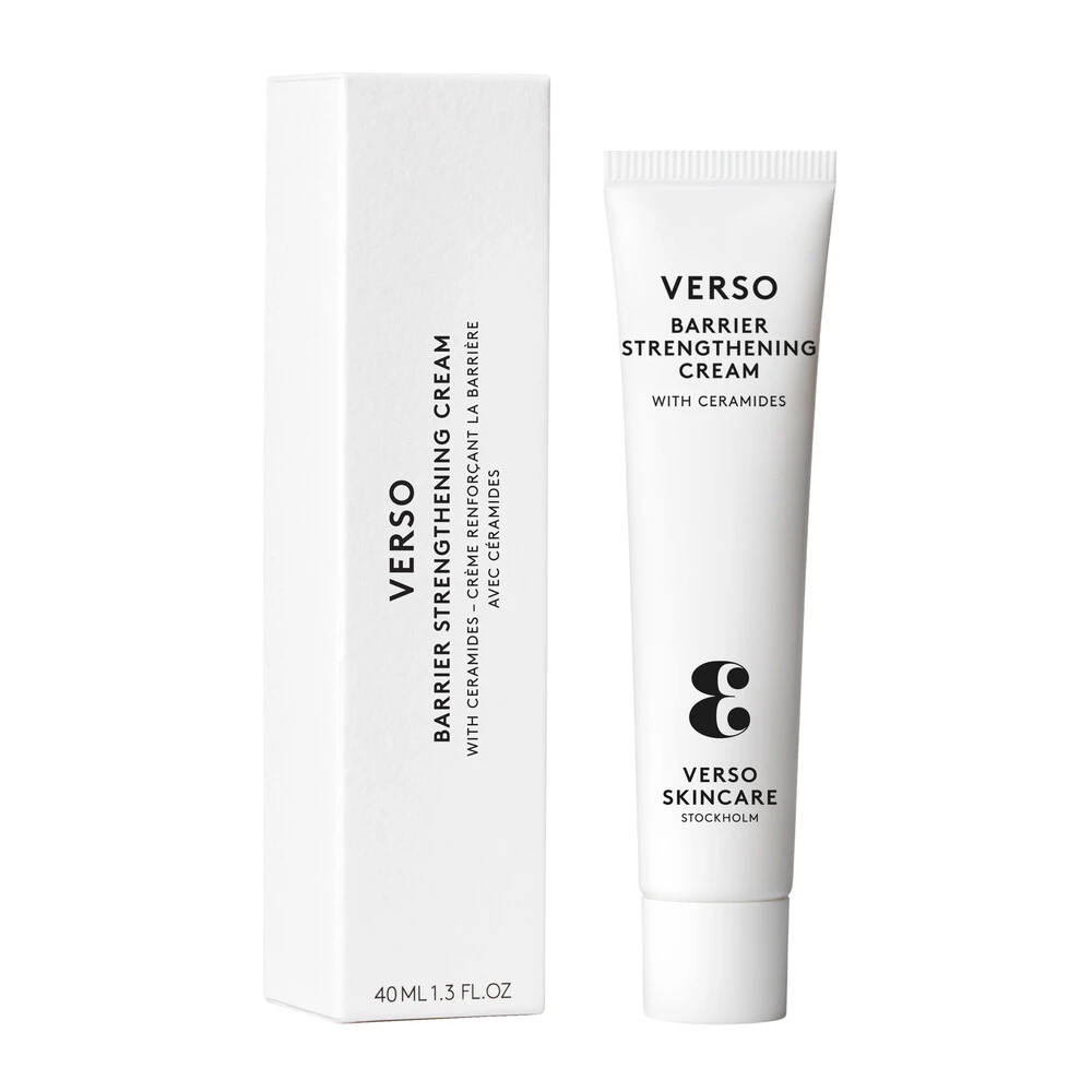 Verso Barrier Strengthening Cream er en barriereforstærkende ansigtscreme, som fugter, nærer og styrker hudens naturlige beskyttelse. Den er designet til daglig brug og er ideel til tør og sensitiv hud.
